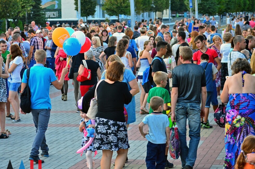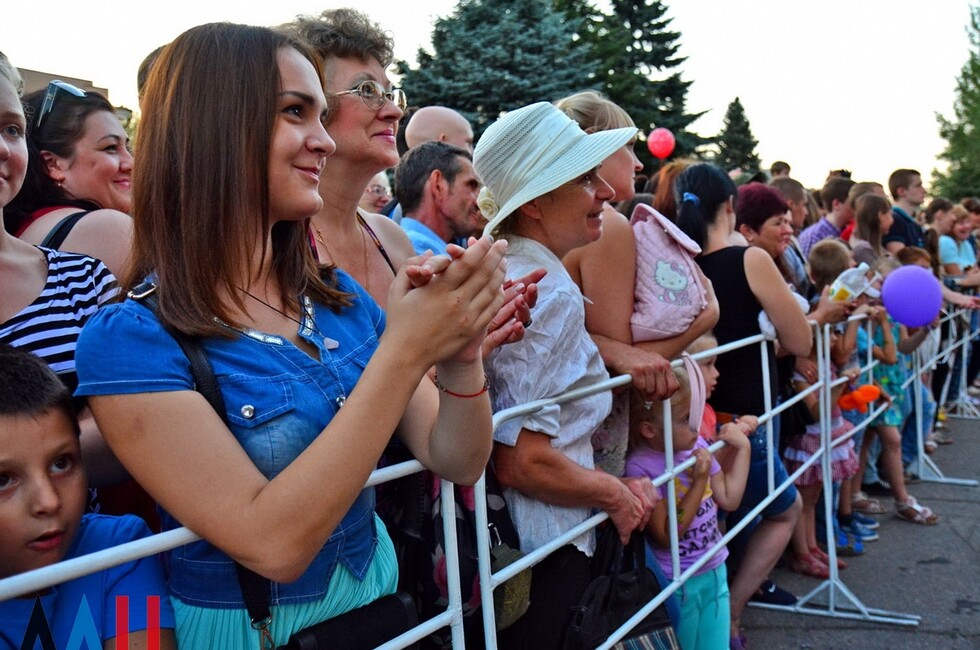 Макеевка, 27 авг – корр. ДАН. Праздничный концерт в честь Дня города Макеевки собрал сегодня на площади возле Театра юного зрителя более 15 тысяч горожан, многие пришли с детьми. Со сцены прозвучали поздравительные обращения представителей городской и республиканской власти. В частности, поздравить земляков пришли председатель парламента ДНР Денис Пушилин и и.о. главы администрации Макеевки Валерий Ляховец.