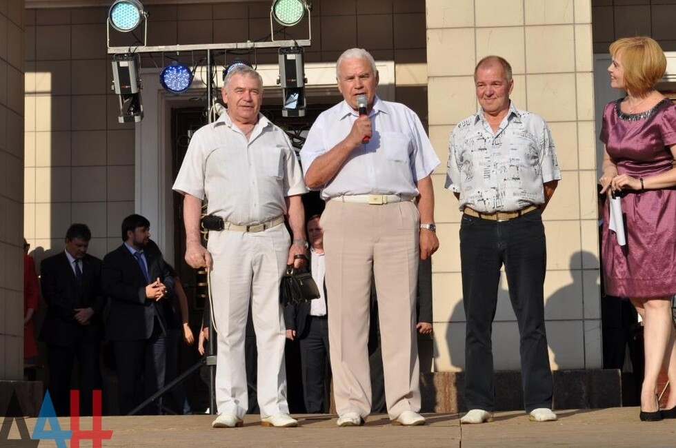 На сцене также выступили депутаты парламента, общественники, руководители профсоюзов. По словам председателя профкома Макеевского металлургического завода (ныне филиал ЕМЗ - прим. ДАН) Юрия Бутова, за время существования предприятия 11 человек были удостоены звания Героя социалистического труда. "Это рекорд среди отрасли", - подчеркнул он.