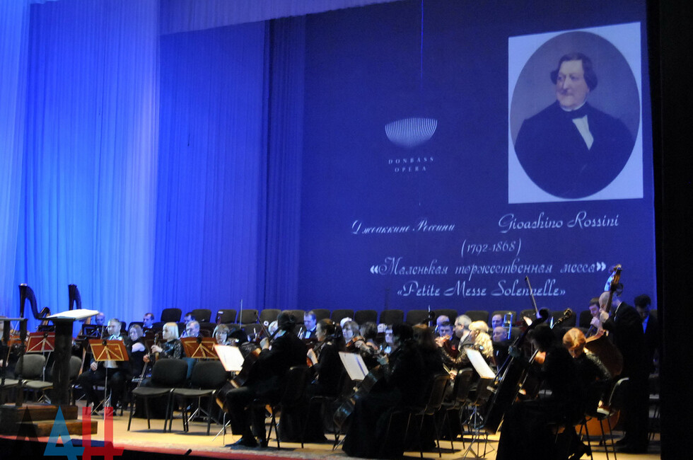 Донецк, 19 янв – ДАН. «Донбасс Опера» восстановила монументальное сочинение выдающегося итальянского композитора Джоаккино Россини «Маленькая торжественная месса». Сегодня оно прозвучало на сцене Донецкого государственного академического театра оперы и балета им. Соловьяненко впервые за историю ДНР, сообщила корр. ДАН руководитель литературно-драматической частью театра Марина Пархоменко.