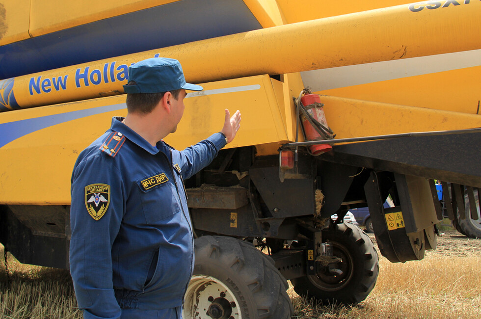 «Сегодня сотрудники Госпожнадзора провели профилактический рейд на предприятии «Колос» в Новоазовском районе. На данном объекте, где полным ходом идет уборка зерновых культур, сотрудники МЧС проверили обкосы и опашку полей, оснащение уборочной техники, агрегатов и автомобилей первичными средствами пожаротушения, исправными искрогасителями и другое оборудование», - говорится в сообщении.