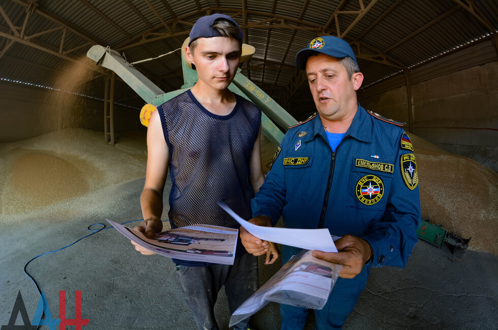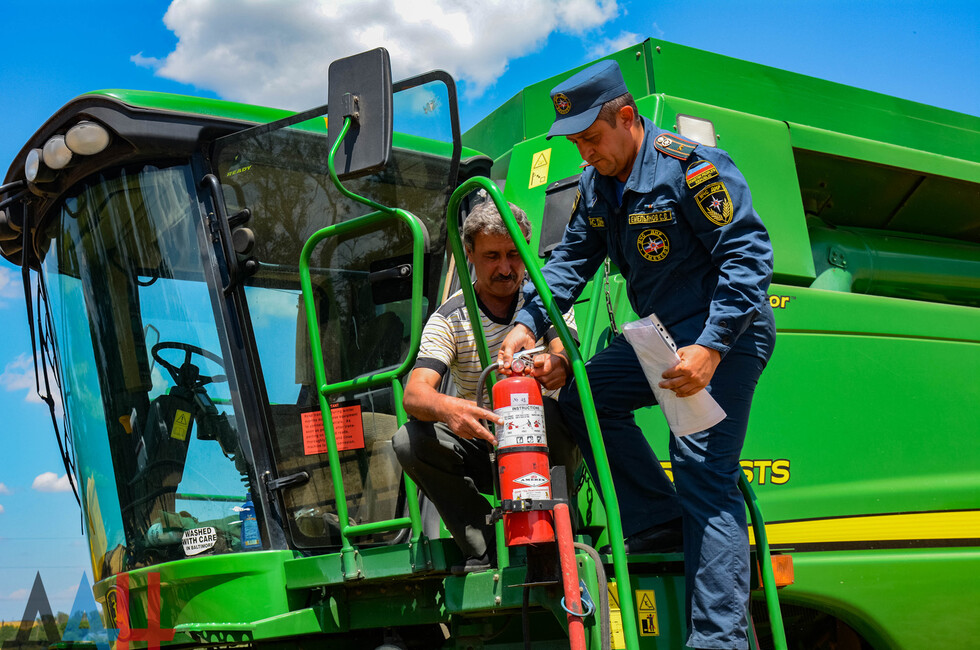 В первую очередь спасатели оценили противопожарное снабжение предприятия, проверили наличие огнетушителей, искрогасителей, заземлений на уборочной технике, дали оценку общему состоянию противопожарной защиты. Также для работников были проведены соответствующие инструктажи.