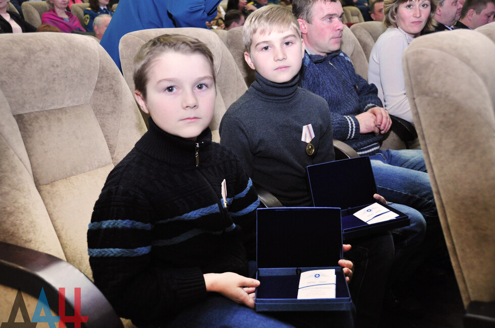 Церемония награждения проходила в Центре славянской культуры. Знак отличия получил студент Донецкого национального технического университета Руслан Гусев, спасший тонувшего в водоеме ребенка. Также были отмечены ученики школы поселка Александровка под Донецком Константин и Максим Овчаренко. Ребята помогали взрослым тушить пожар, возникший в их доме из-за обстрела.