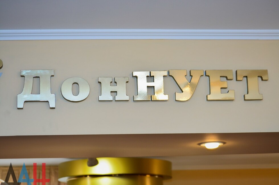 Встреча со студентами и педколлективом проходила в зале первого корпуса Донецкого национального университета экономики и торговли им. Туган-Барановского. Там собралось более 100 человек: учащиеся, преподаватели, руководство вуза. На мероприятии обсудили перспективы развития экономики государства, кадровые проблемы и пути их разрешения.