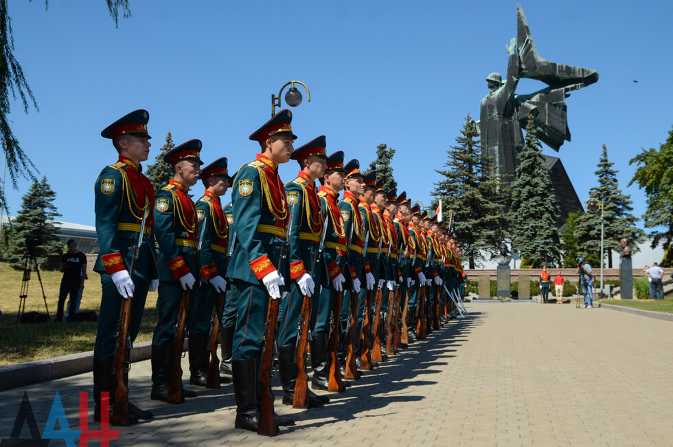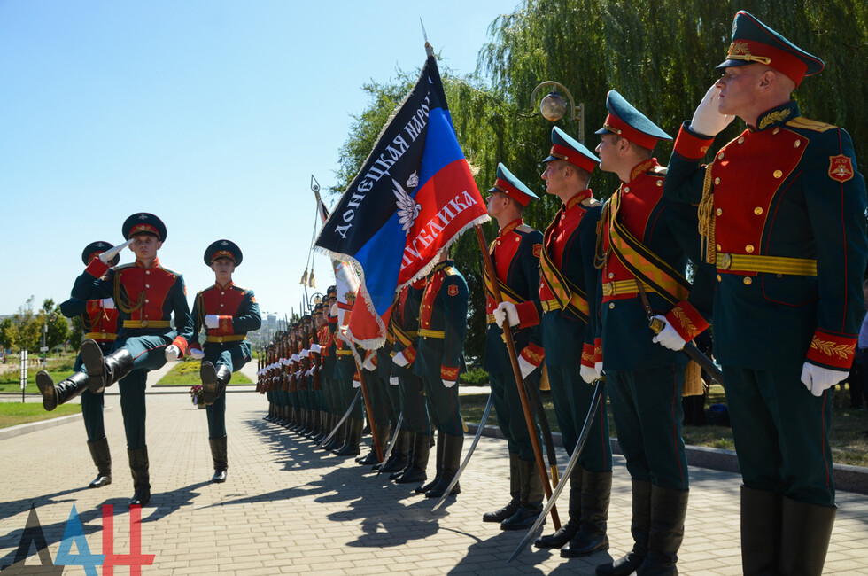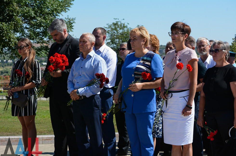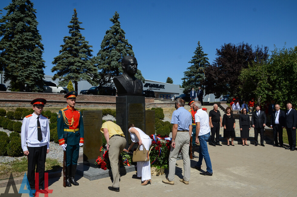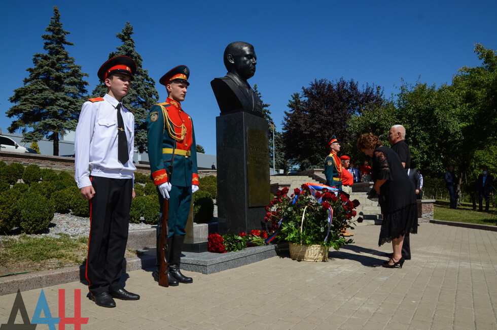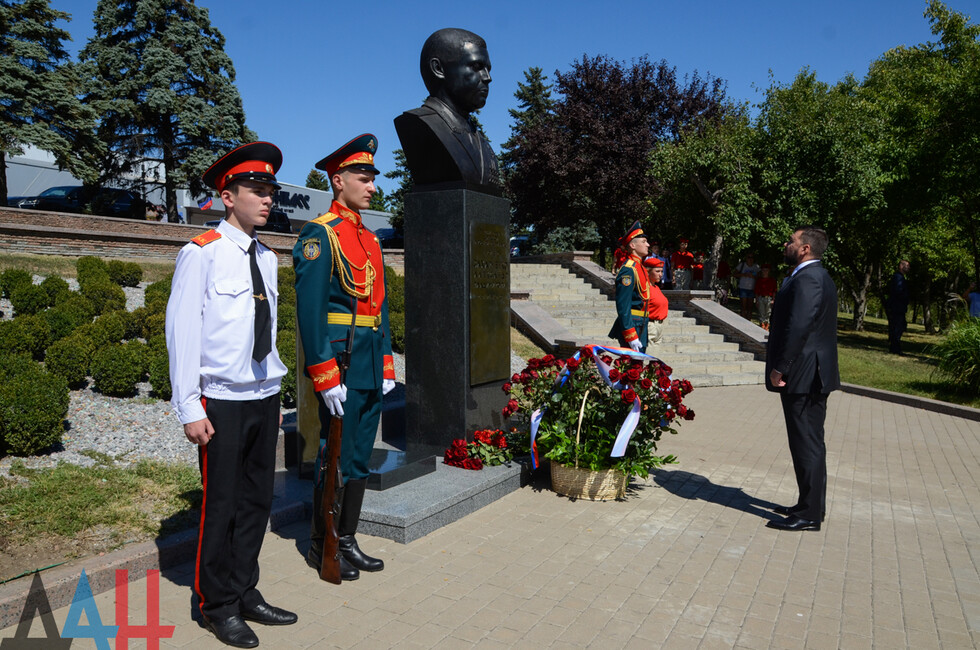 Вдоль следования колонны участников стоял почетный караул из числа курсантов Донецкого высшего общевойскового командного училища (ДонВОКУ). Первым цветы возложил Пушилин, возле памятника он постоял несколько минут, посмотрел на бюст и склонил голову перед ним. Затем к памятнику возложили цветы остальные присутствующие.