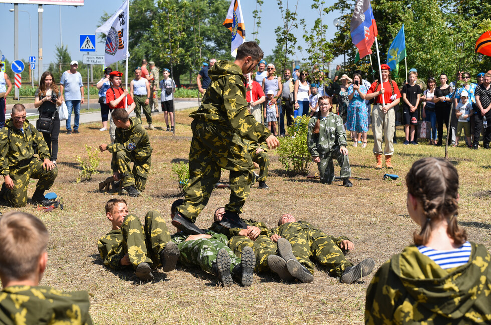Одним из самых зрелищных элементов программы празднования Дня ВДВ в Донецке стало выступление участников Военно-патриотического объединения имени Героя ДНР Олега Гришина. Парни и девчонки, которым по 15-17 лет, отрабатывали приемы владения пистолетом и ножом, упражнения комплекса армейского рукопашного боя. Понятное дело, что дрались не всерьез, только обозначая удары. Но вместе с тем правильно проведенный и примененный в полную силу прием боевого самбо гарантированно «вырубал» бы противника. Причем ребята демонстрировали не только слаженность и координацию движений, но и высокий соревновательный и боевой дух.