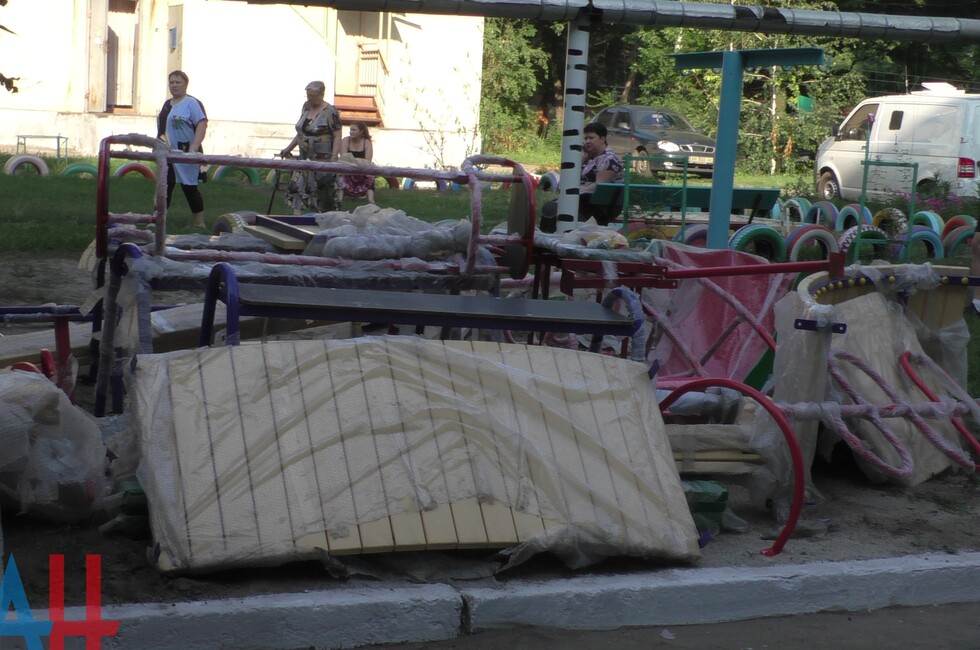 Донецк, 9 июл – ДАН. Министерство обороны ДНР подарило одному из спальных районов Донецка современную детскую площадку. Об этом сообщил корр. ДАН с места события.