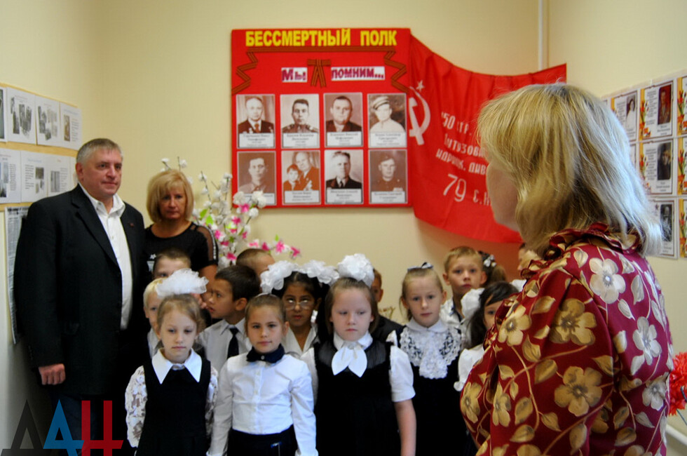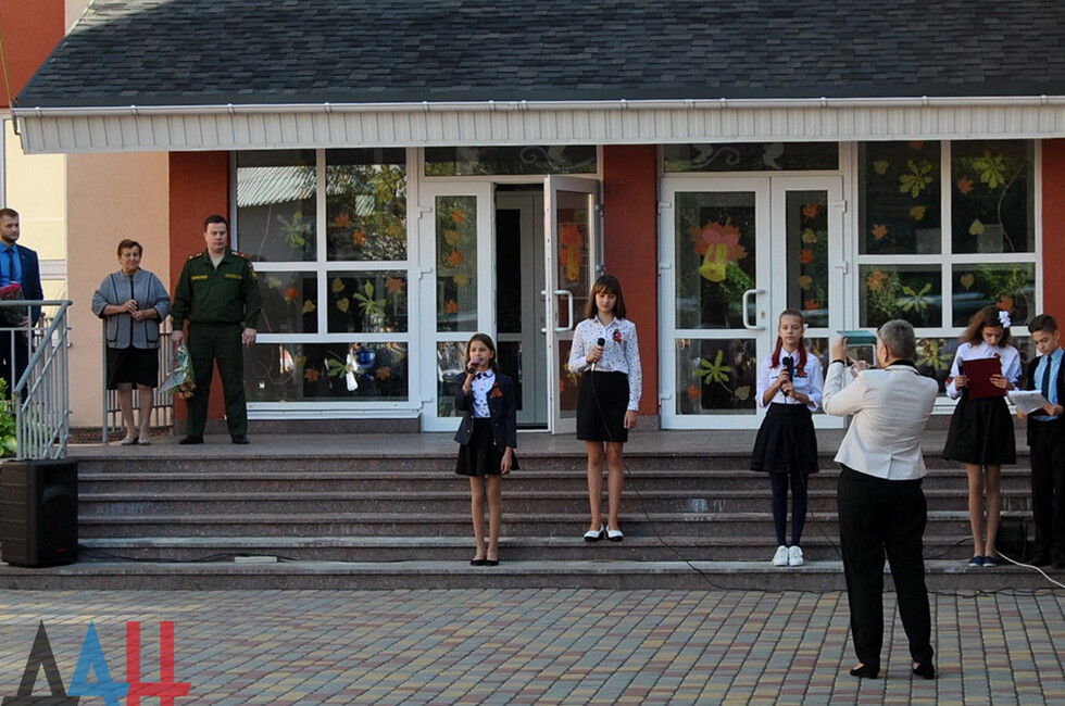 Донецк, 7 сен – корр. ДАН. Учащиеся и сотрудники прифронтовой школы № 63 Донецка почтили память защитников Донбасса времен Великой Отечественной войны и жертв украинской агрессии в наши дни. Мероприятие прошло на территории учебного заведения, участие приняли порядка 300 человек.