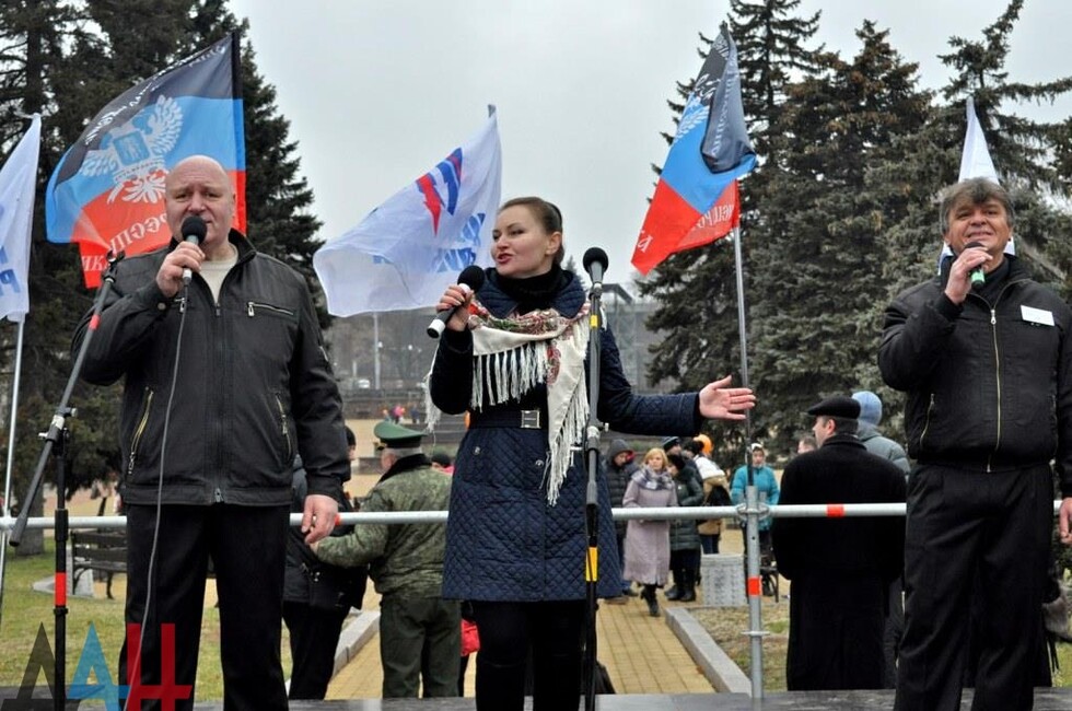 При входе в центральный парк имени Щербакова, где проходил митинг, активисты вручали всем желающим георгиевские ленточки. Как рассказали участники митинга, сегодняшним праздником жители Донбасса подчеркивают преемственность поколений и свою приверженность миру - в отличие от Украины, которая продолжает обстреливать населенные пункты.