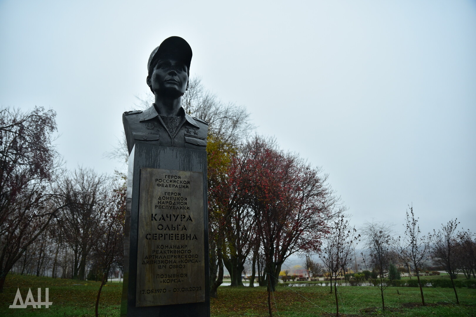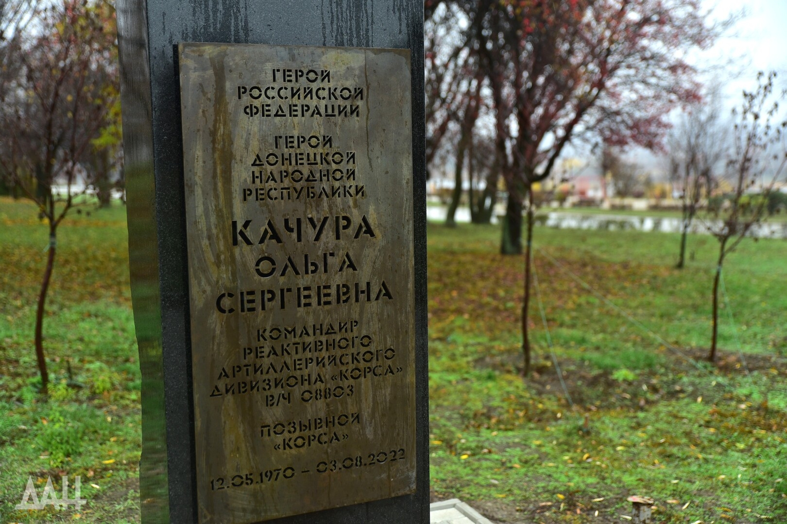 Донецк, 19 ноя — ДАН. Активисты молодежных организаций почтили память легендарного замкомандира артиллерийского дивизиона Ольги Качуры (позывной Корса). Акция прошла в День ракетных войск и артиллерии на Аллее Героев в Донецке.