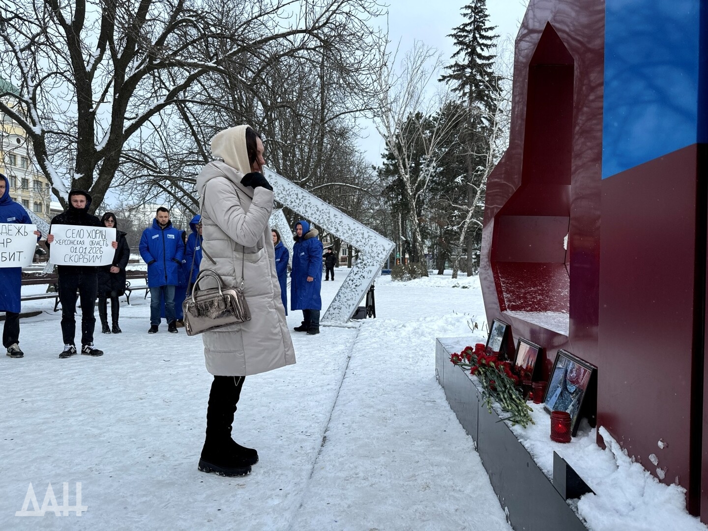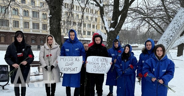 Донецк, 2 янв — корр. ДАН. Представители «Молодой Гвардии Единой России» провели в Донецке траурное мероприятие в память о погибших при налете на кафе и гостиницу в селе Хорлы Херсонской области. Об этом с места сообщил корреспондент ДАН.