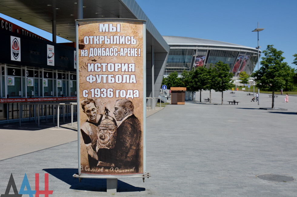«Донбасс Арена» была открыта летом 2009 года. Вмещает 52667 зрителей. До войны была домашним стадионом футбольного клуба «Шахтер». С началом боевых действий арена практически не функционирует. 1 марта 2017 года главная арена Донбасса была переведена под юрисдикцию ДНР. *дя*сж