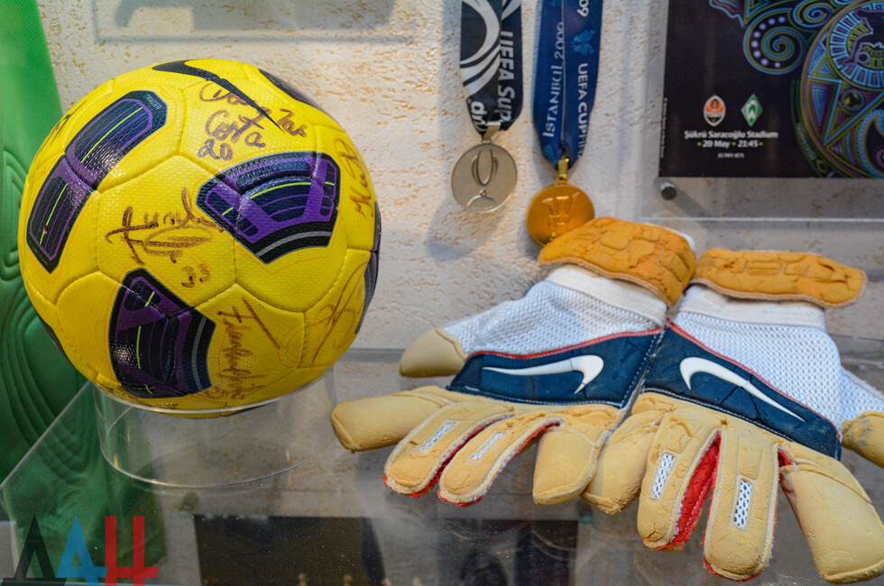 Всего в музее – пять залов. В них представлены различные экспонаты: футболки игроков команды, бутсы, мячи, документы, медали, кубки. В том числе – копия кубка УЕФА.