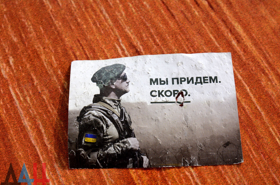 Свидетель добавила, что наряду с листовками для запугивания населения режим Порошенко использовал SMS: сообщения с угрозами приходили с короткого номера 666. Распространение угрожающих материалов продолжалось и позднее. Как рассказала луганчанка Галина Забудько, она обнаружила листовки по месту работы – на крыльце библиотеки.