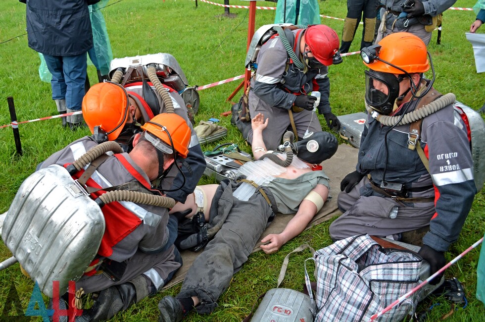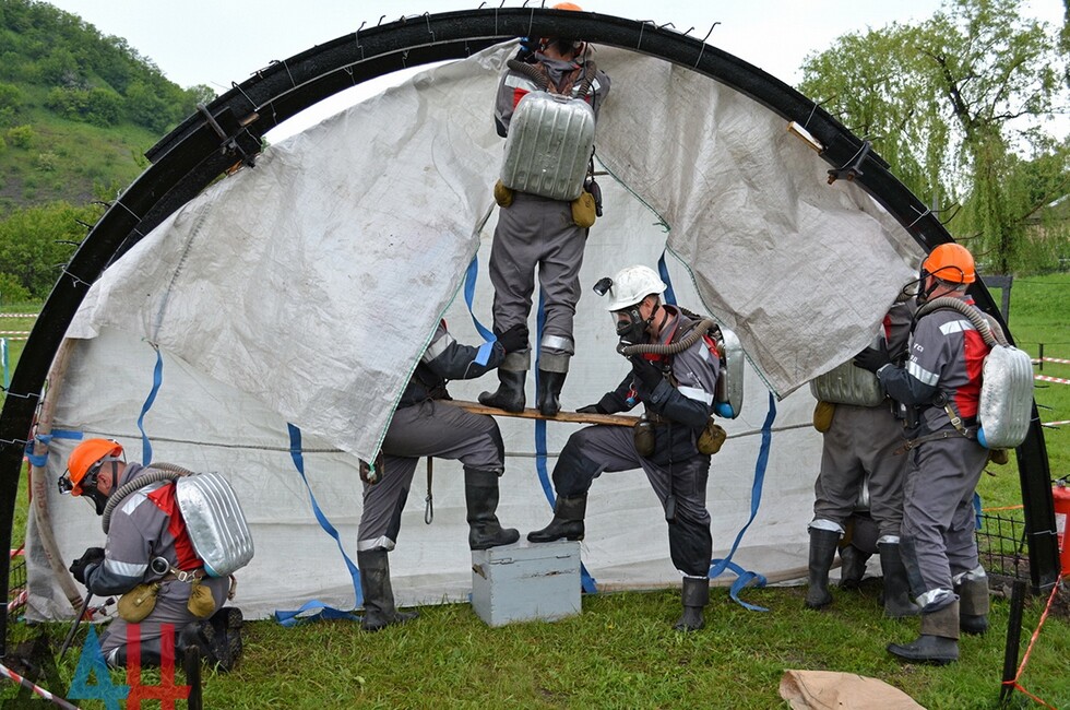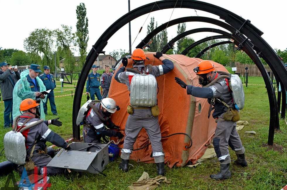 Донецк, 19 мая – корр. ДАН. Сотрудники МЧС Донецкой Народной Республики сегодня провели тактические учения по отработке тактики спасения горняков, пострадавших от условного взрыва на угольной шахте. Первый день учебных мероприятий проходил на базе подразделения государственного военизированного горноспасательного отряда Донецка.