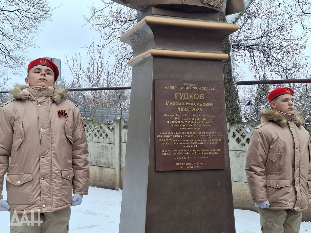 На церемонии зачитали адрес от матери Гудкова Ольги Михайловны, которая отметила, что носить имя генерал-майора — почетно для школы. «Он — военачальник нового поколения, внук гордой гвардии шахтеров и офицеров, патриот своей Родины, — говорится в послании. — Позывной генерала — „Варяг“, девиз „Варяга“: „Где мы, там победа“. Идите по жизни с этим девизом».