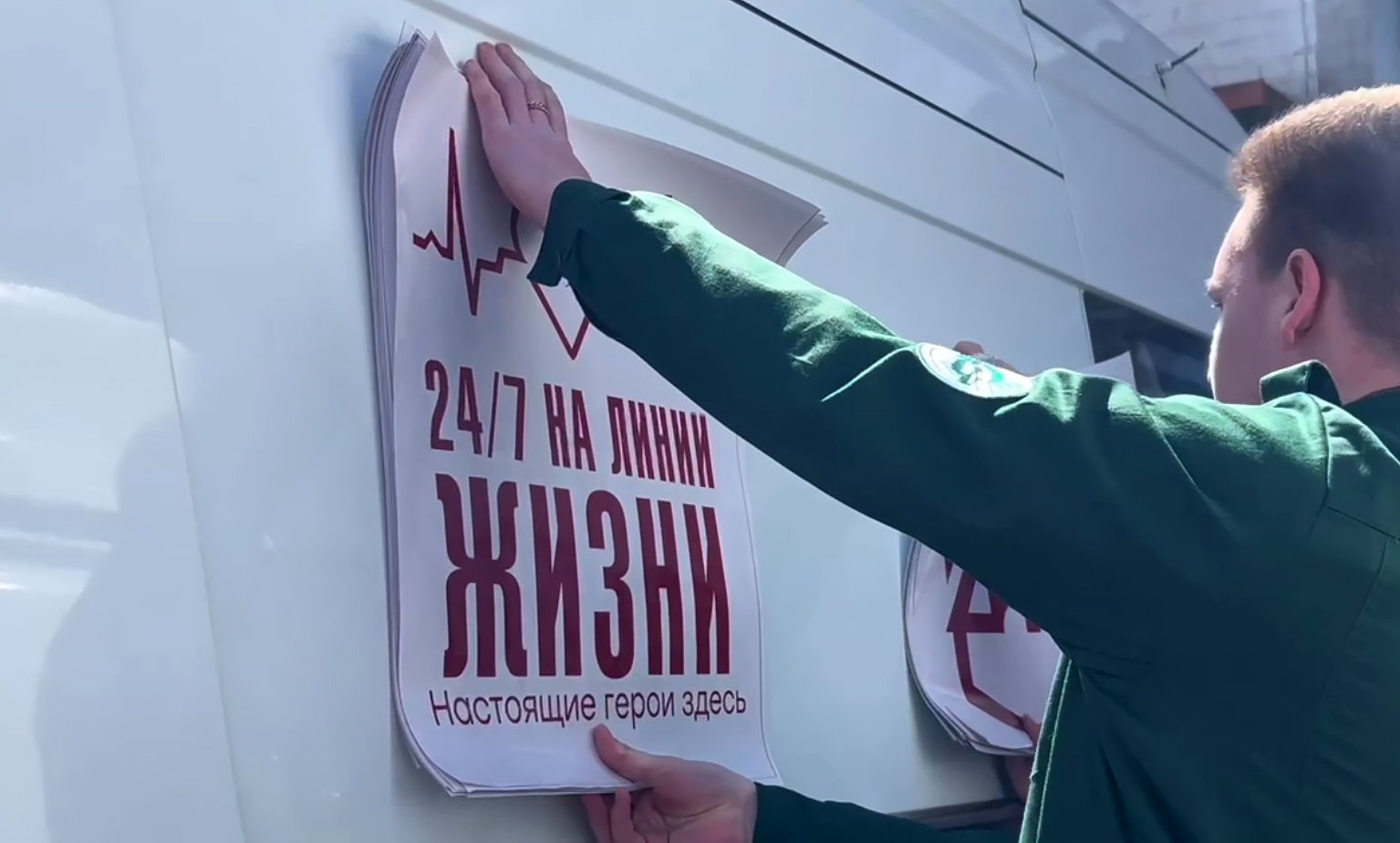 Брендирование прошло в Донецке, Макеевке и Мариуполе. На служебные машины нанесли тематические наклейки в фирменном стиле с надписью: «24/7 на линии жизни. Настоящие герои здесь». 25 автомобилей оформили в Донецке, 20 — в Макеевке и 25 — в Мариуполе.