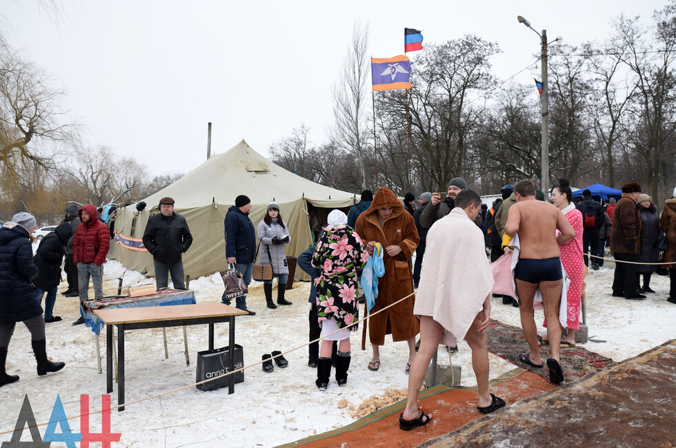 Донецк, 19 янв – корр. ДАН. Водоем «Бабаково-1», более известный среди местных жителей как «Чистые пруды», сегодня стал местом проведения крещенских купаний в прифронтовом Кировском районе Донецка. Совершить обряд омовения по случаю праздника Богоявления с самого утра собрались несколько сотен граждан, поздравить горожан пришли депутаты Народного Совета ДНР, представители городских и районных властей.