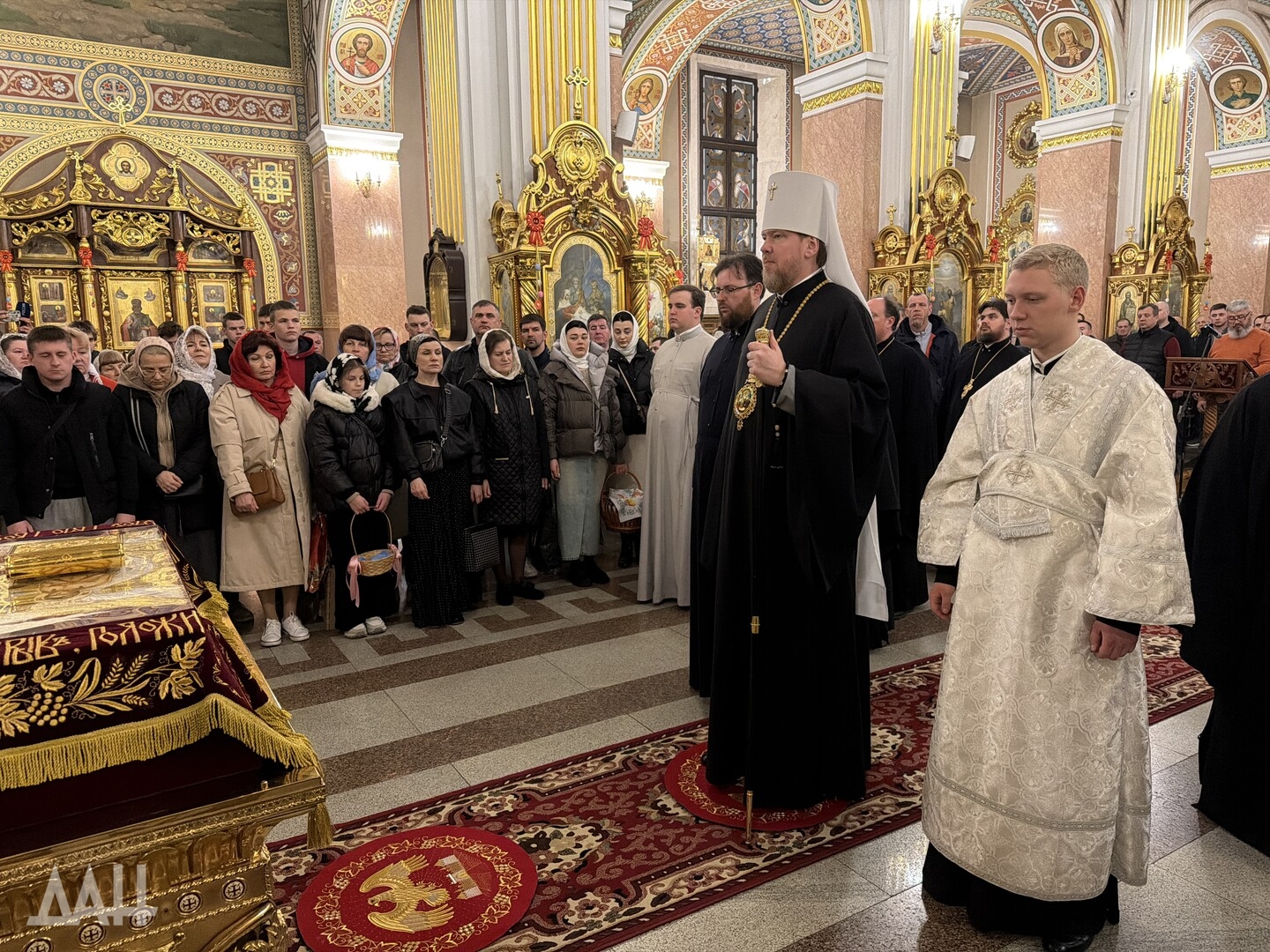 Ранее митрополит Донецкий и Мариупольский Владимир возглавил чин Погребения Спасителя — одно из самых трепетных и догматически глубоких богослужений церковного года — вечерню с выносом Плащаницы Господа нашего Иисуса Христа и утреню с чином Погребения Спасителя.