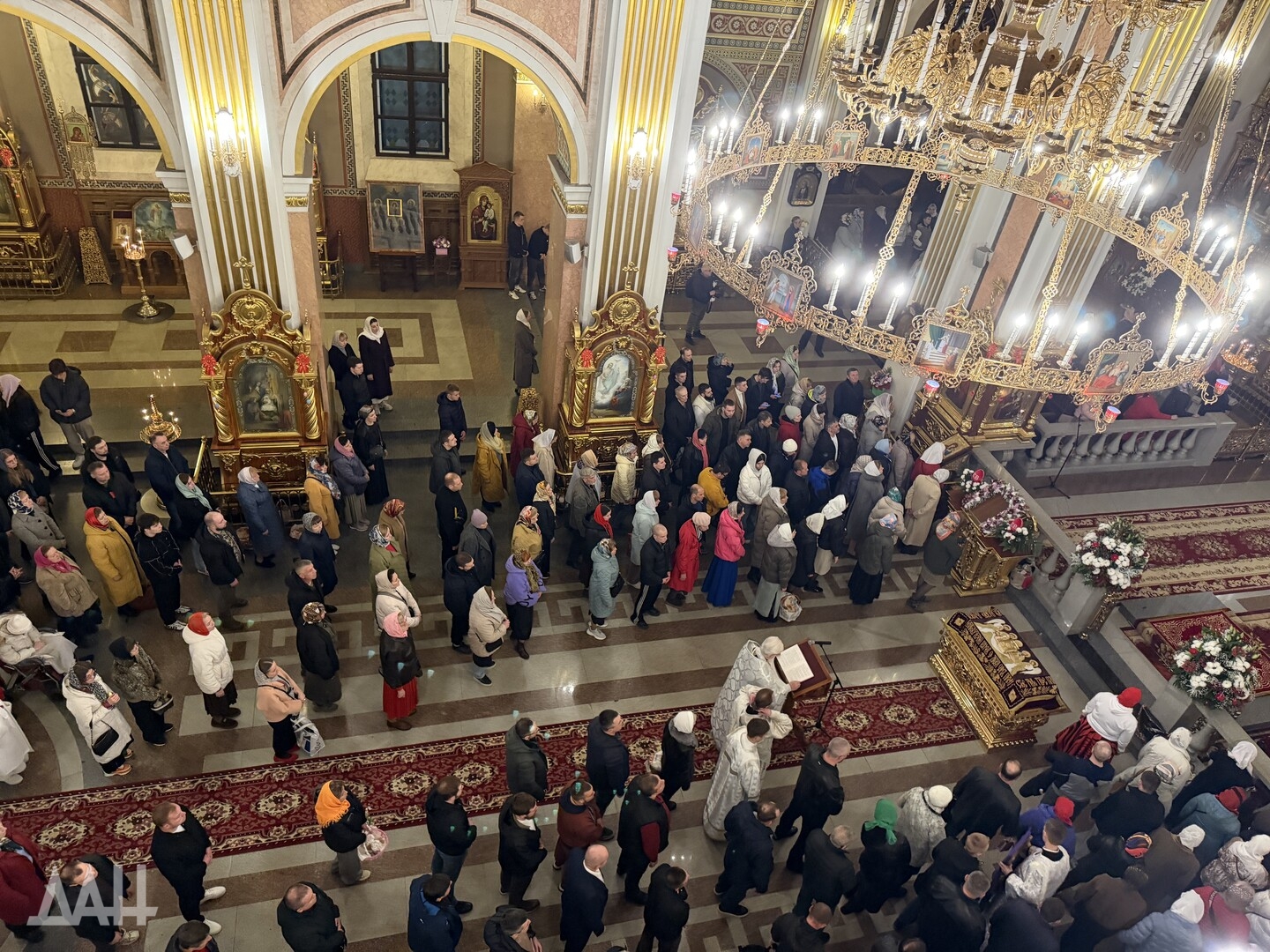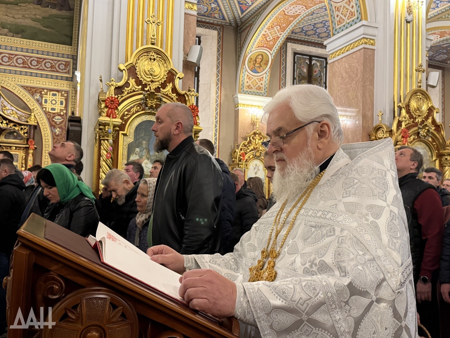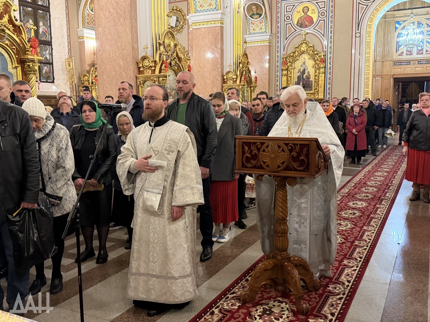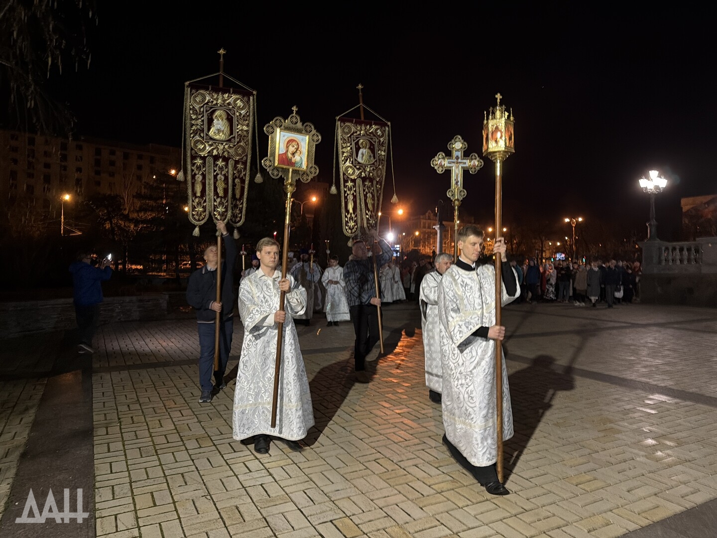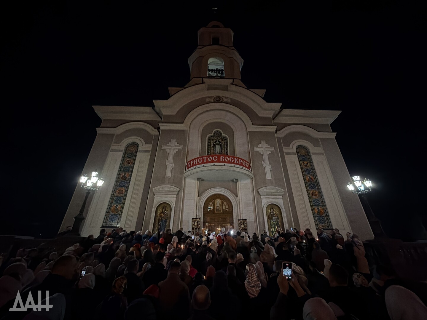 Донецк, 12 апр — ДАН. Ночная пасхальная служба прошла в Спасо-Преображенском кафедральном соборе Донецка. Светлый праздник объединил несколько десятков православных верующих, передает корреспондент ДАН.