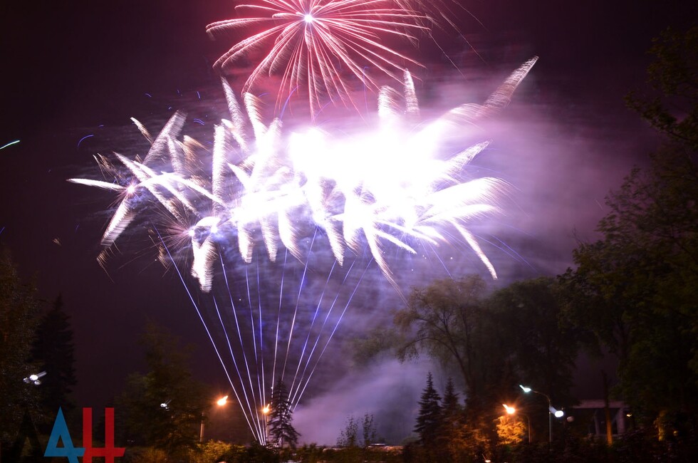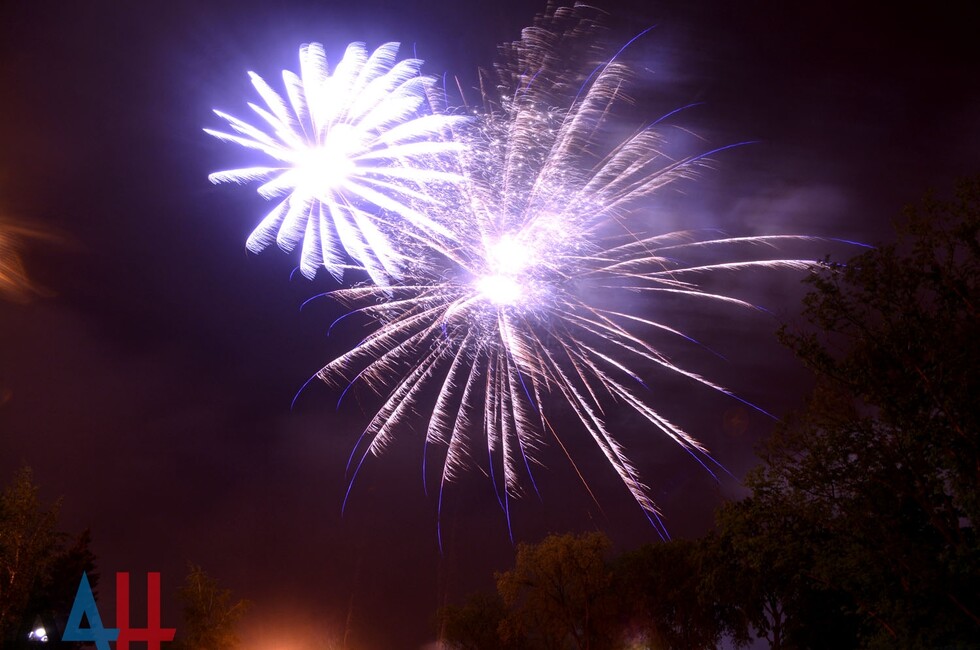 Донецк, 11 мая - корр. ДАН. Праздничный фейерверк украсил сегодня ночное небо Донецка в честь второго в истории ДНР Дня Республики.