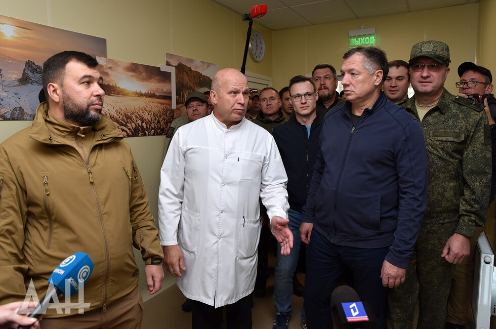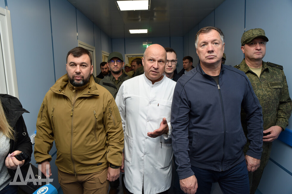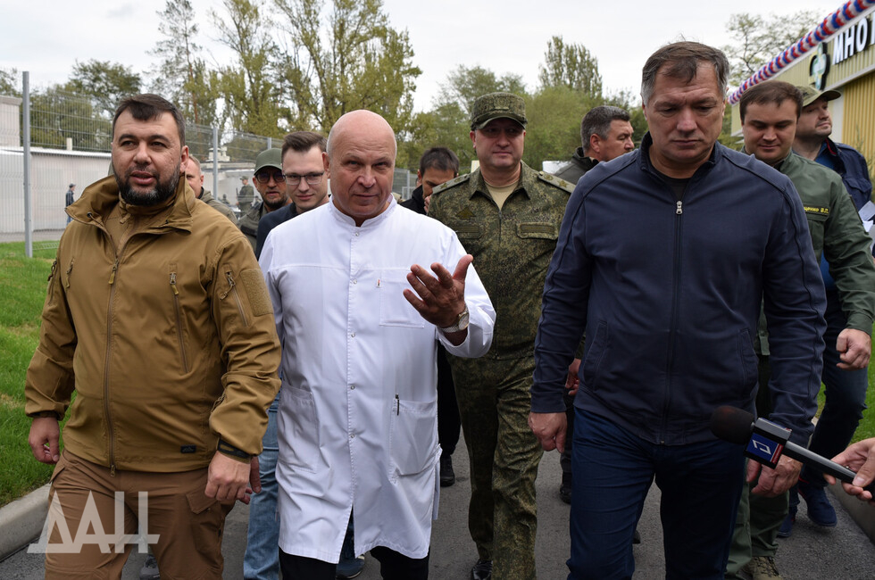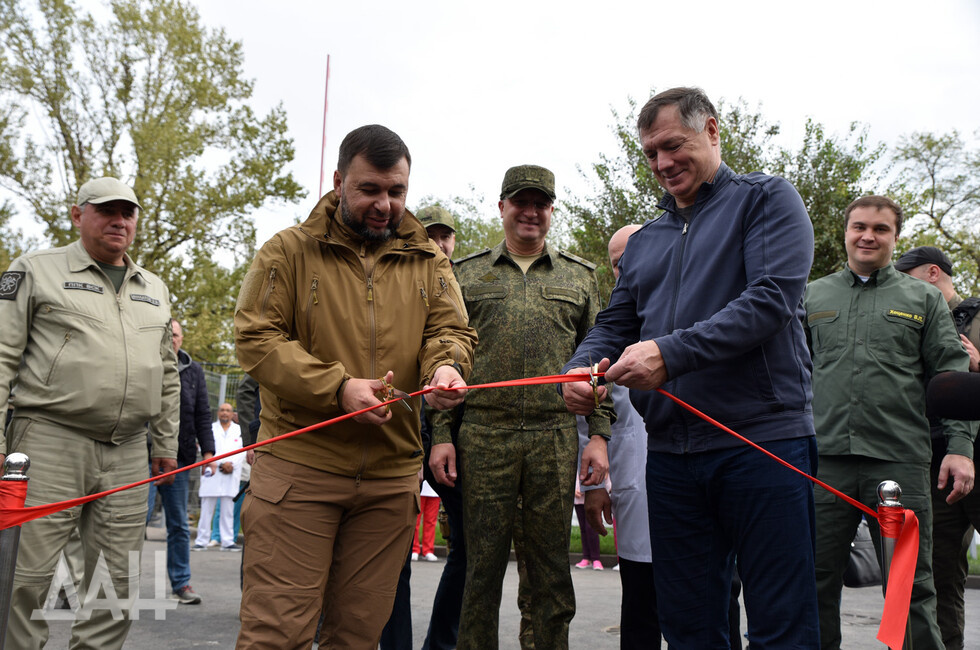 Пушилин и Хуснуллин перерезали красную ленточку и вместе с медиками и строителями осмотрели центр.