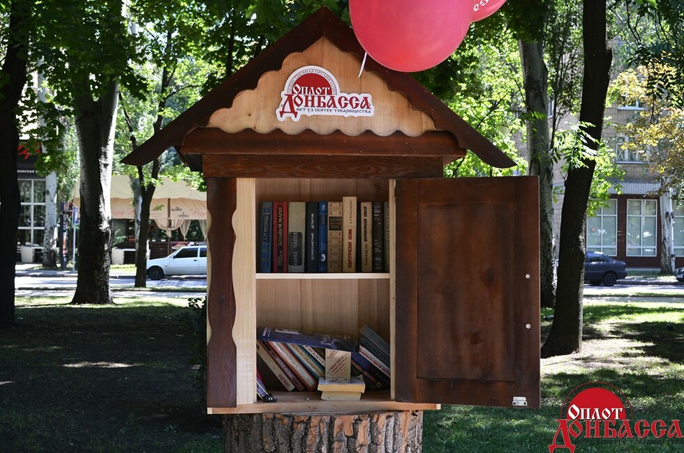 Отметим, что уличные библиотеки стали распространяться по всему миру с 2009 года со временем стали неотъемлемой частью культурной жизни мегаполисов. Они обычно устанавливаются в форме полок, скамеек, книжных домиков на улицах города. Правило едино для всех: любой желающий может взять приглянувшуюся книгу, почитать, и вернуть на полку. Здесь нет места библиотекарю. Читальня открыта для всех желающих. Первая в ДНР уличная читальня была открыта в донецком парке имени Щербакова в конце мая 2015 года. *сж*нк