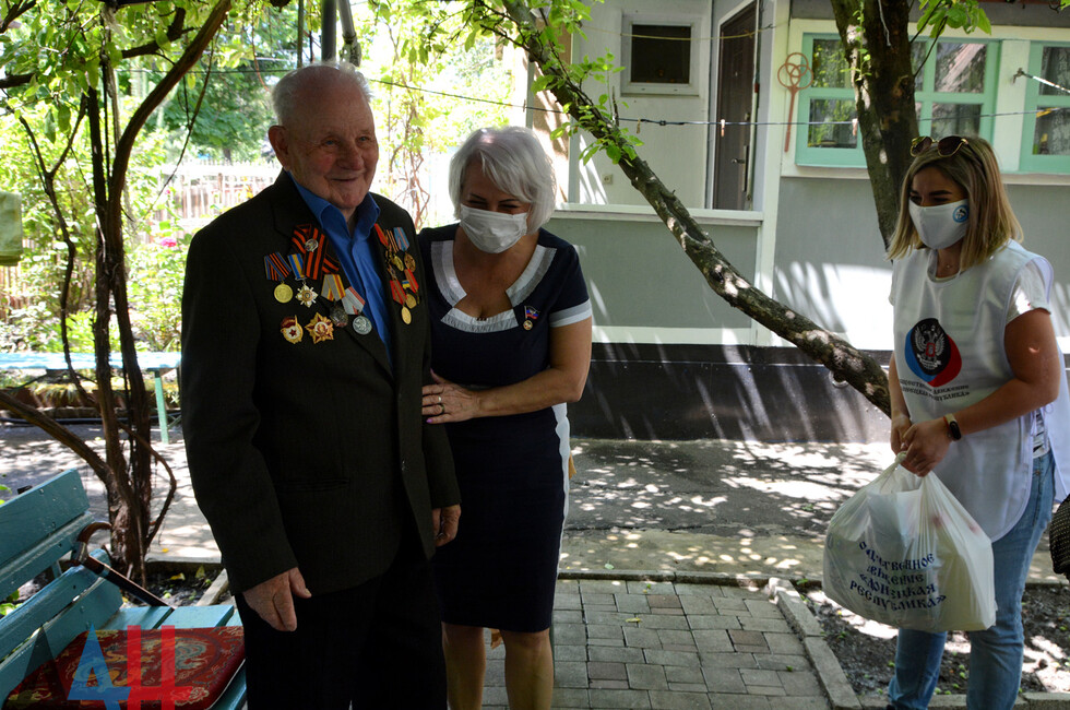 Донецк, 10 июн – ДАН. Активисты оперативного штаба «Здоровое движение» передали сегодня гуманитарную помощь ветеранам Великой Отечественной войны в прифронтовых Киевском и Куйбышевском районах Донецка. Помощь передана 29 участникам боевых действий. Каждый набор весит около восьми килограммов. Он включает стиральный порошок, чистящие и моющие средства, зубную пасту, шампунь, мыло, салфетки. Как сообщили в штабе, работа ведется с конца мая. За прошедшее время выдано 89 наборов. Оказание помощи будет продолжено, заявили в штабе. *нм*дя