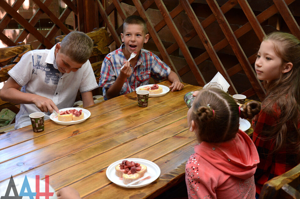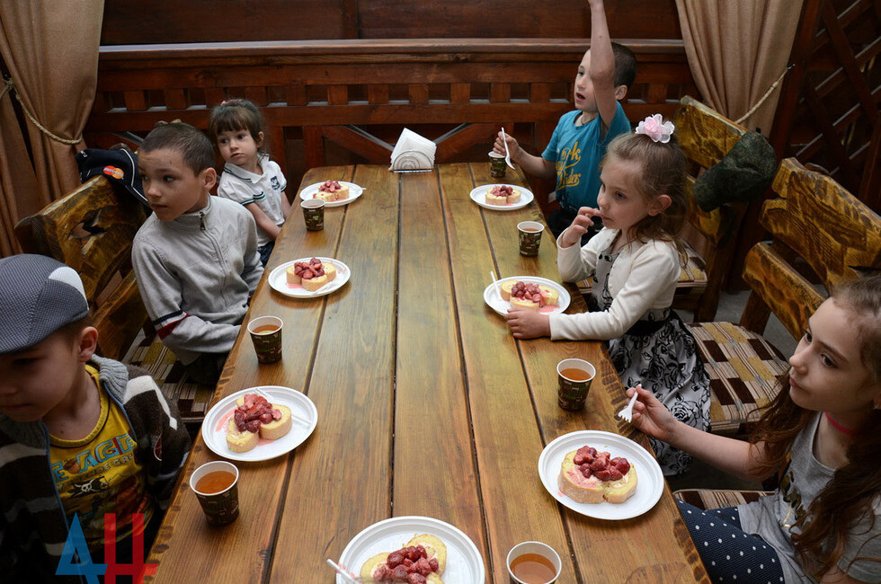 Донецк, 2 июн – корр. ДАН. Активисты общественного движения «Донецкая Республика» сегодня организовали развлекательную программу для детей военнослужащих. Праздник был подготовлен в одном из столичных кафе для 60 ребят.
