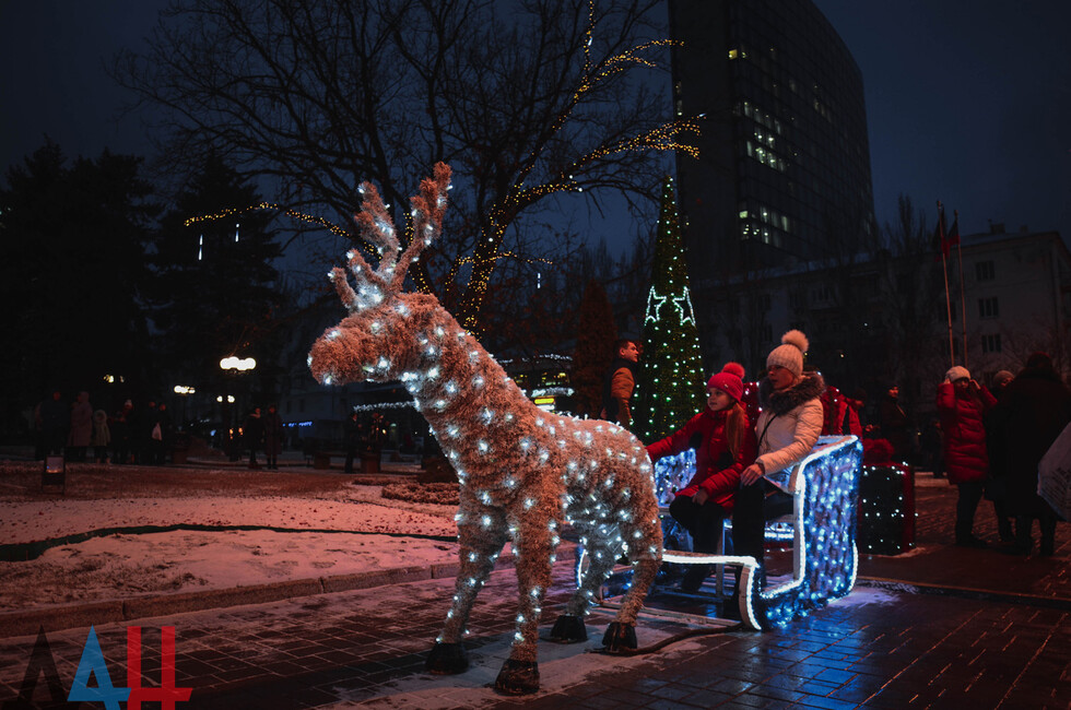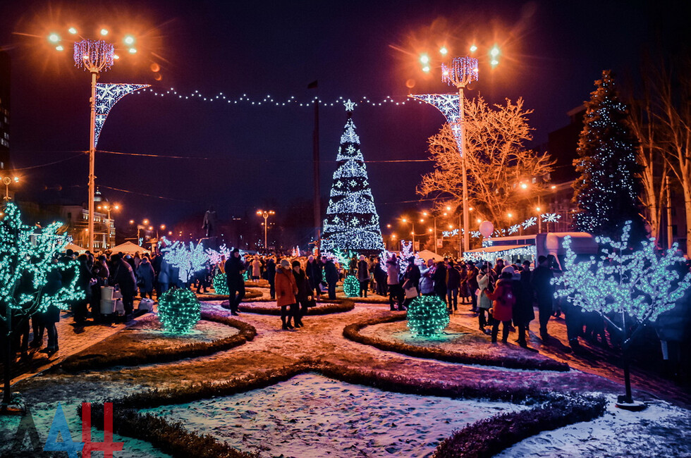 Донецк, 21 дек – ДАН. Огни главной новогодней елки ДНР торжественно зажглись сегодня на центральной площади столицы – площади Ленина. Почетными участниками церемонии открытия елки стали Глава ДНР Денис Пушилин и исполняющий обязанности главы администрации столицы Алексей Кулемзин.