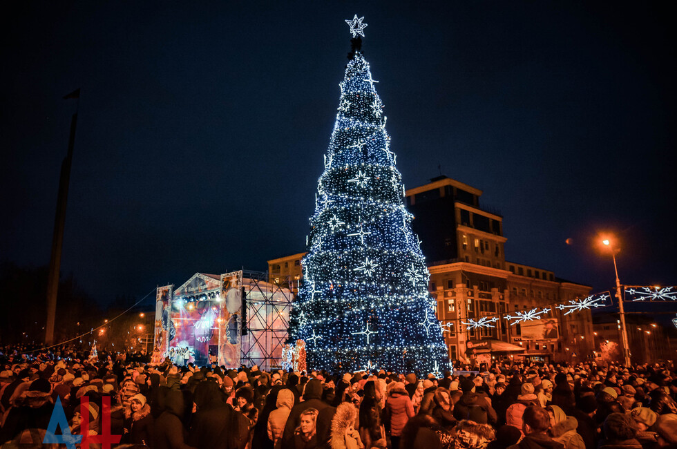Добавим, что главная новогодняя елка ДНР собрана из множества секций, ее высота составляет 23 метра. Украшена ель трехкилометровой гирляндой в синем и белом цветах, а также более чем 150 игрушками. Увенчана елка пятиконечной звездой ярко-белого цвета.