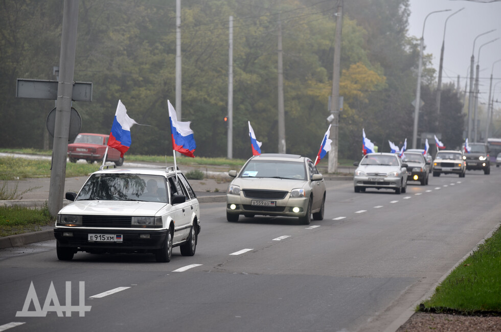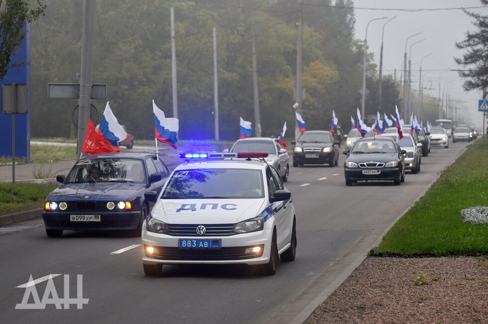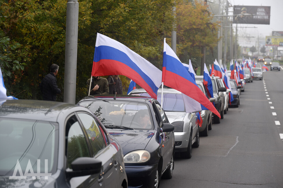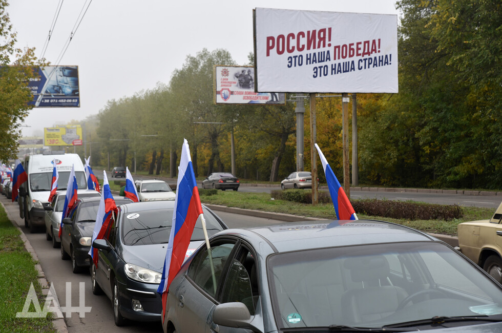 Донецк, 30 сен — корр. ДАН. Колонна машин со всех городов и районов ДНР, в том числе недавно освобожденных, отправилась сегодня в направлении Саур-Могилы. Мероприятие посвящено итогам референдума, а также запланированному в Москве подписанию документов о воссоединении Донбасса с Россией.