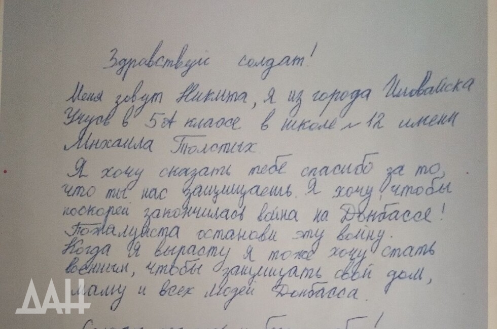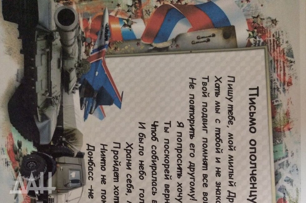 Напомним, патриотическая акция для детей «Письмо моему Zащитнику», которая продлится до мая, была объявлена в ДНР 18 марта. Дошкольникам и ученикам 1-11-х классов предлагается написать письмо, нарисовать открытку или оформить памятные стенгазеты и видеосюжеты для военнослужащих Республики.