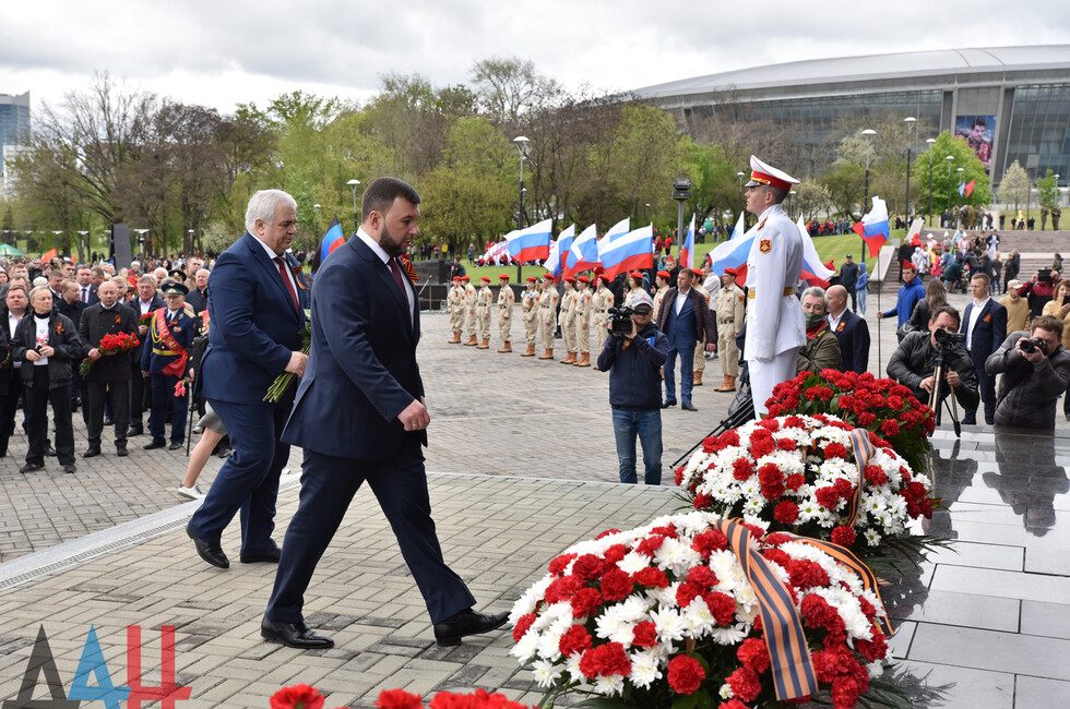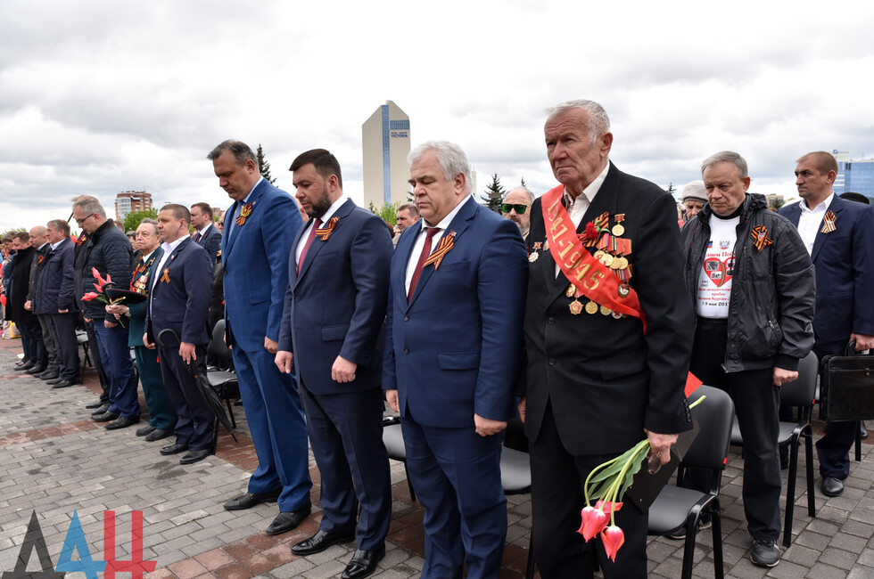 В мероприятии приняли участие Глава ДНР Денис Пушилин, депутат Государственной Думы РФ Казбек Тайсаев, представители министерств и ведомств, главы городов и районов, ветераны Великой Отечественной войны и бывшие узники концлагерей, активисты общественных движений и организаций, профсоюзов, военнослужащие, другие жители. Большинство участников митинга пришли с красными гвоздиками в руках и георгиевскими лентами на груди.