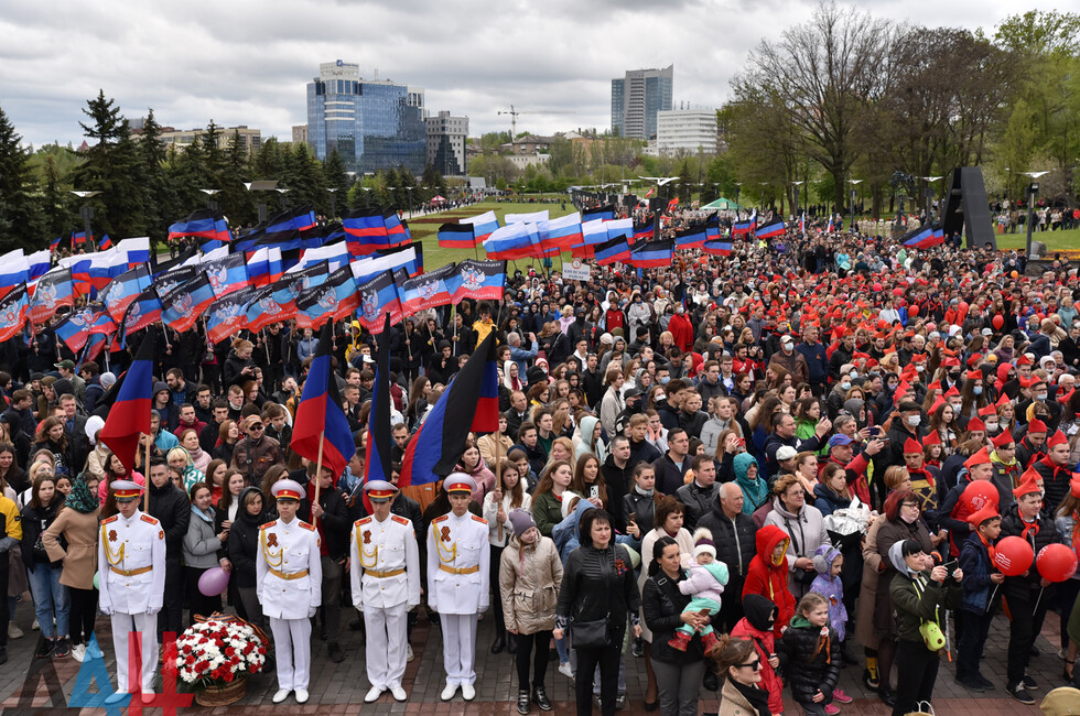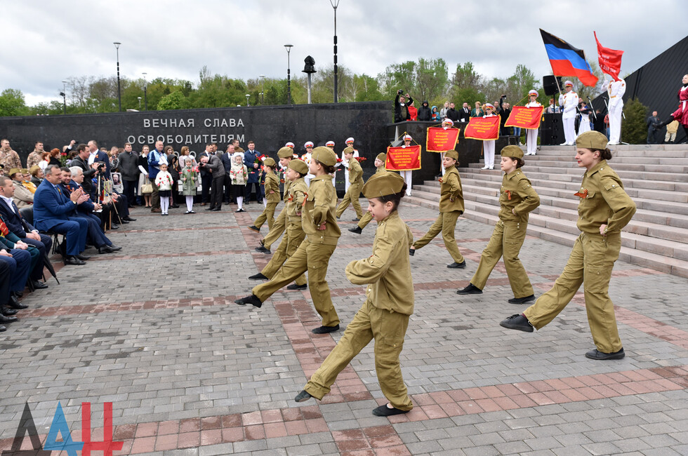 Донецк, 9 мая – ДАН. Шествие Бессмертного полка в Донецке завершилось сегодня митингом у монумента «Твоим освободителям, Донбасс» в парке Ленинского комсмола в центре столицы. Почтить память погибших в Великой Отечественной войне воинов пришли около 20 тысяч жителей Донецкой Народной Республики.