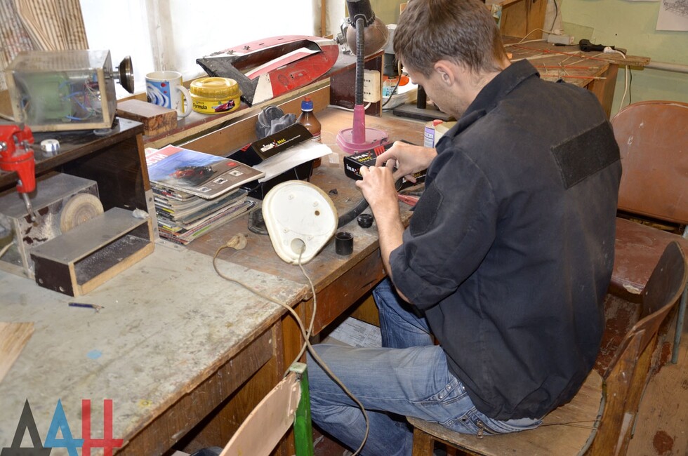 Руководитель "Нептуна" устроил для корр. Донецкого агентства новостей экскурсию в одну из мастерских и показал, как трудятся его подопечные. В тот момент «у станка» находились около десяти воспитанников, которые работали над своими макетами для участия в новых соревнованиях.