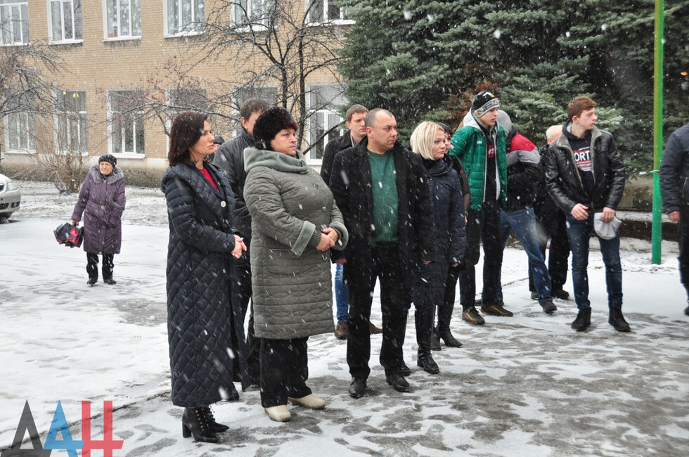 Присутствующие почтили память легендарного защитника Донбасса минутой молчания и возложили цветы к именной мемориальной табличке, которая была установлена на фасаде учебного заведения в минувшем году.
