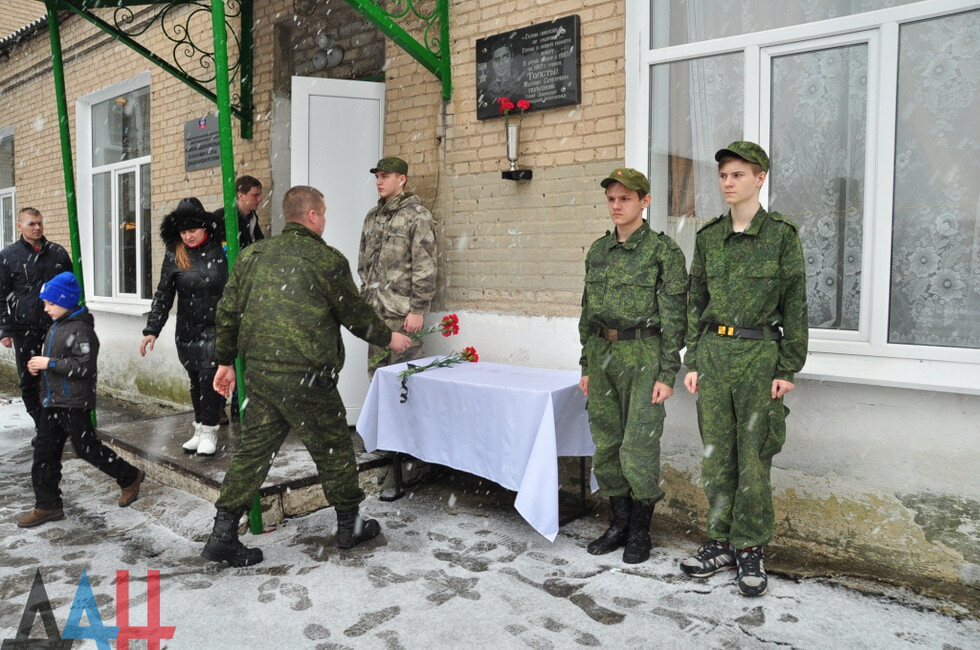 «Год назад 8 февраля погиб Герой нашей Республики, храбрый воин Михаил Толстых. Для жителей ДНР он стал символом защитника Республики, - сказала, выступая перед собравшимися, Волкова. - Этот человек сильного характера и сейчас вдохновляет воинов на подвиги. Для нас он - человек-легенда, воплощающий в себе мужество и отвагу. И такую память о нем мы передадим будущим поколениям».