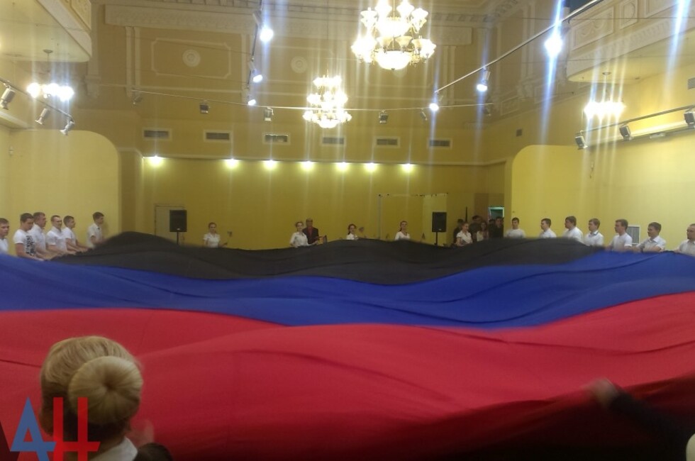 Донецк, 19 окт – корр. ДАН. Мероприятие по случаю Дня флага в ДНР состоялось сегодня в Донецком молодежном центре, который лишился своего прежнего помещения из-за украинского обстрела, а сегодня торжественно открылся на новом месте. Праздник собрал несколько сотен школьников и студентов Донецка.