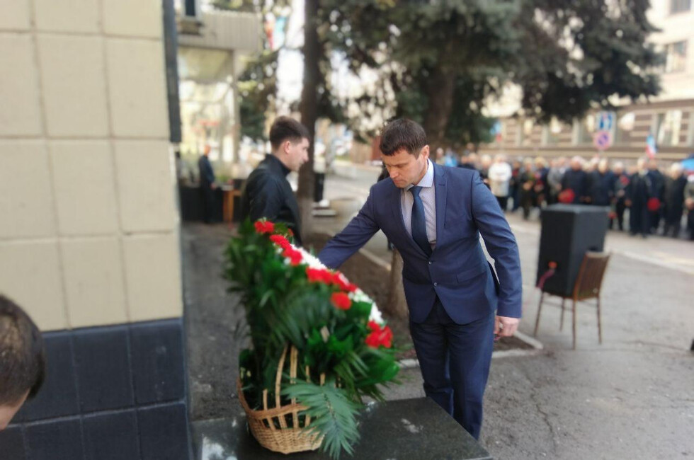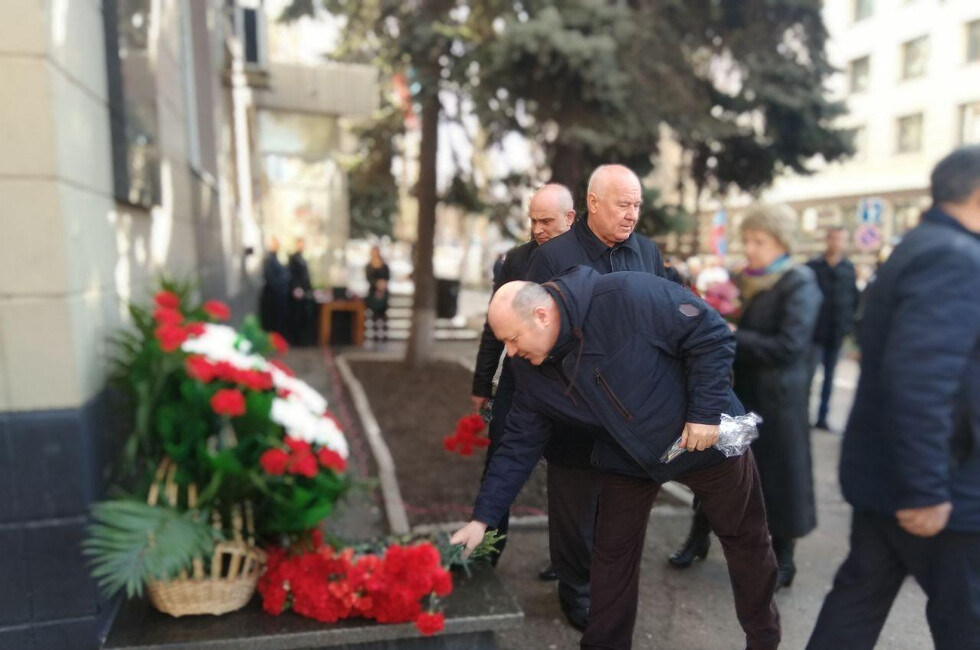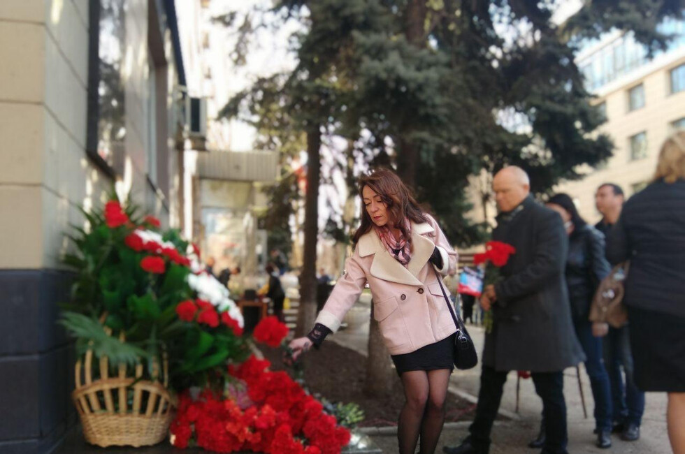 В ходе митинга собравшиеся почтили память погибших минутой молчания, а также возложили цветы к мемориальной табличке с их именами.