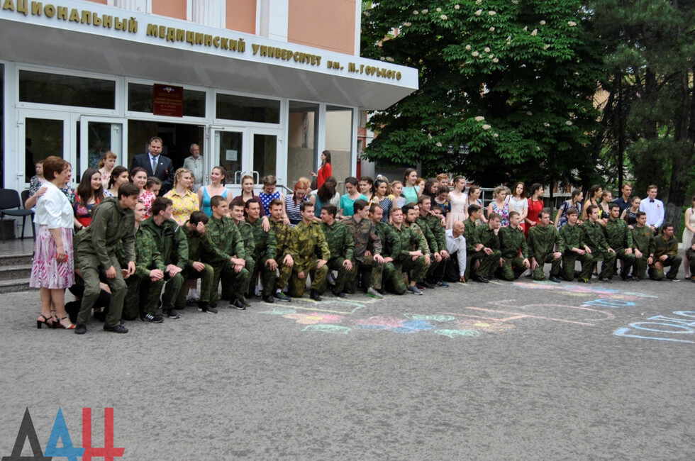 Донецк, 8 мая – корр. ДАН. Торжественное мероприятие в честь Дня Победы прошло сегодня в Донецком национальном медицинском университете имени М. Горького. На нем собралось около 500 студентов и преподавателей вуза.