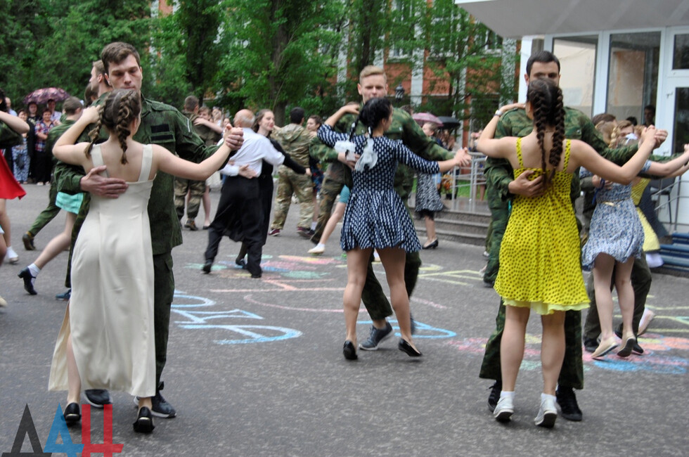 Весенний дождь не помешал проведению торжеств. Они начались концертом фронтовых песен и солдатским вальсом в честь ветеранов Великой Отечественной войны.