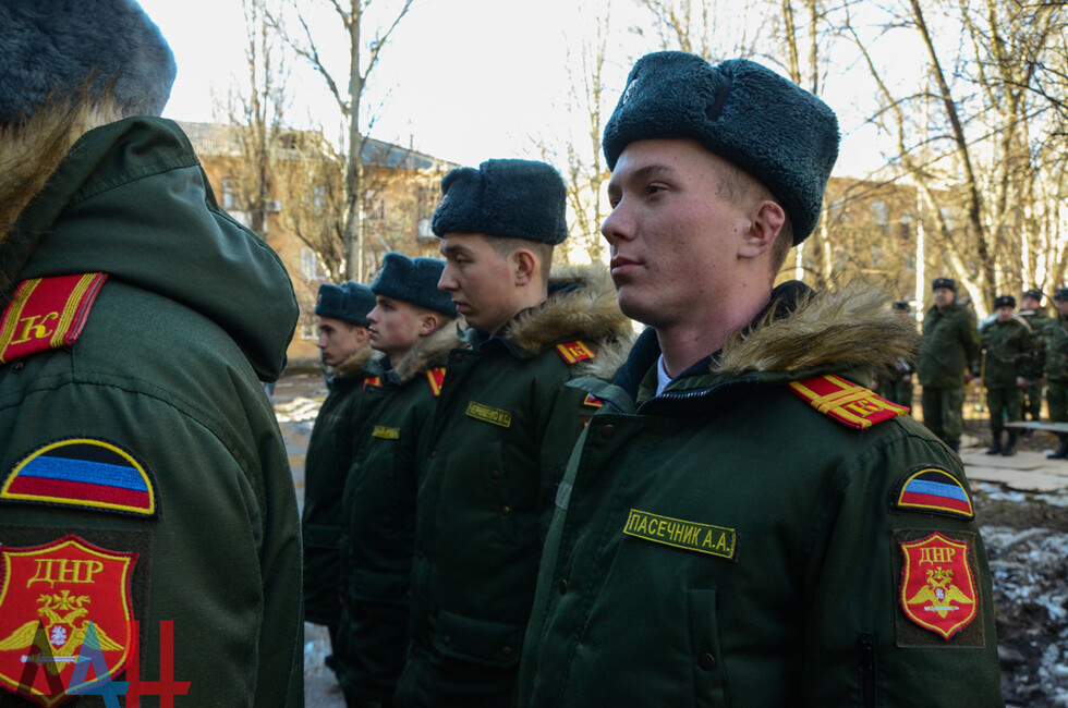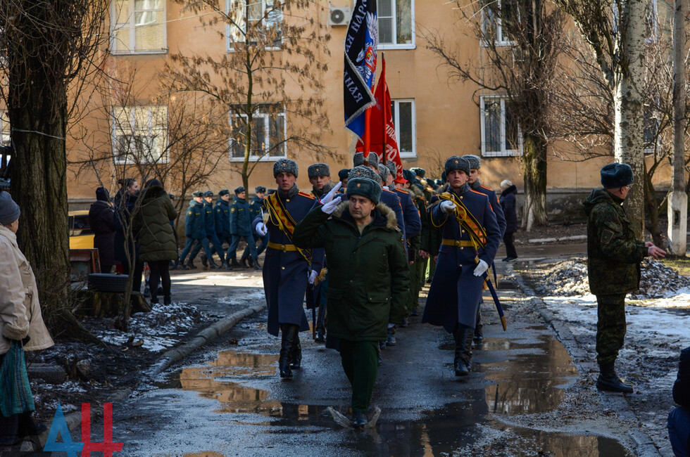 Сначала перед ветераном маршем прошла колонна курсантов Донецкого высшего общевойскового командного училища, за ними проследовали учащиеся академий гражданской защиты МЧС и внутренних дел ДНР, а также воспитанники военно-патриотического движения «Молодая Гвардия – Юнармия». Аккомпанемент параду обеспечивал духовой оркестр ДонВОКУ.