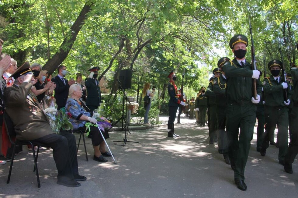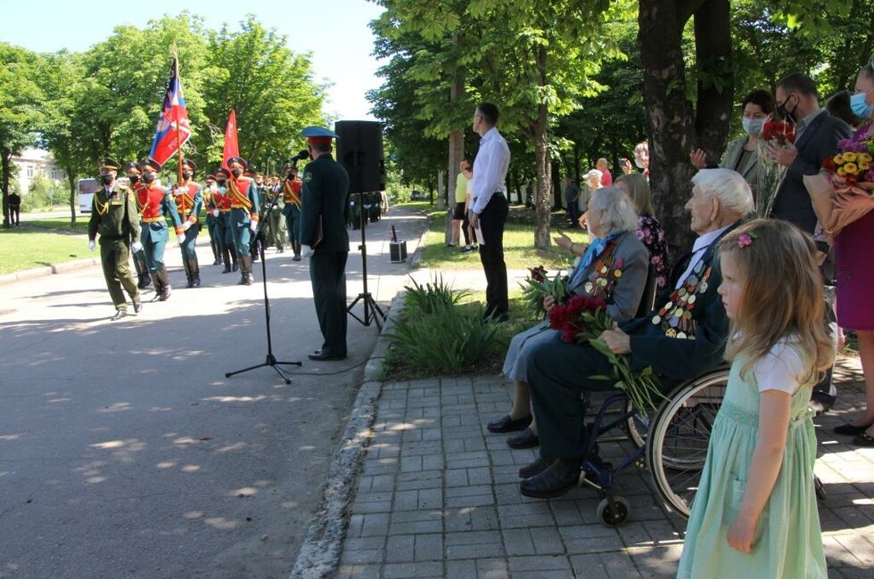 Для всех ветеранов курсанты Донецкого высшего общевойскового командного училища торжественным маршем прошли с песнями Великой Победы. Все участники ВОВ в знак уважения и почета награждены Благодарственными письмами Главы ДНР Дениса Пушилина и общественного движения «Донецкая Республика».