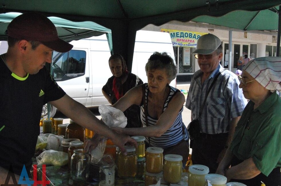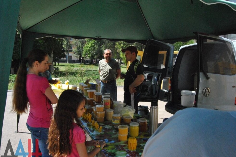 Донецк, 13 июн - ДАН. Выставка продукции пчеловодческих хозяйств Донецкой Народной Республики состоялась сегодня на площади у Дворца культуры «Юбилейный» в Пролетарском районе столицы, сообщает корр. ДАН с места события.