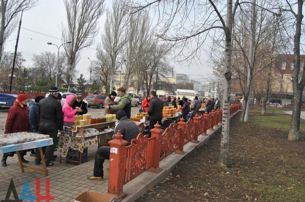 Первые часы проведения ярмарки посетила не одна сотня дончан. Люди активно пробуют и приобретают полюбившиеся сорта меда. Позже к пчеловодам Харцызска присоединятся также пасечники из других городов.