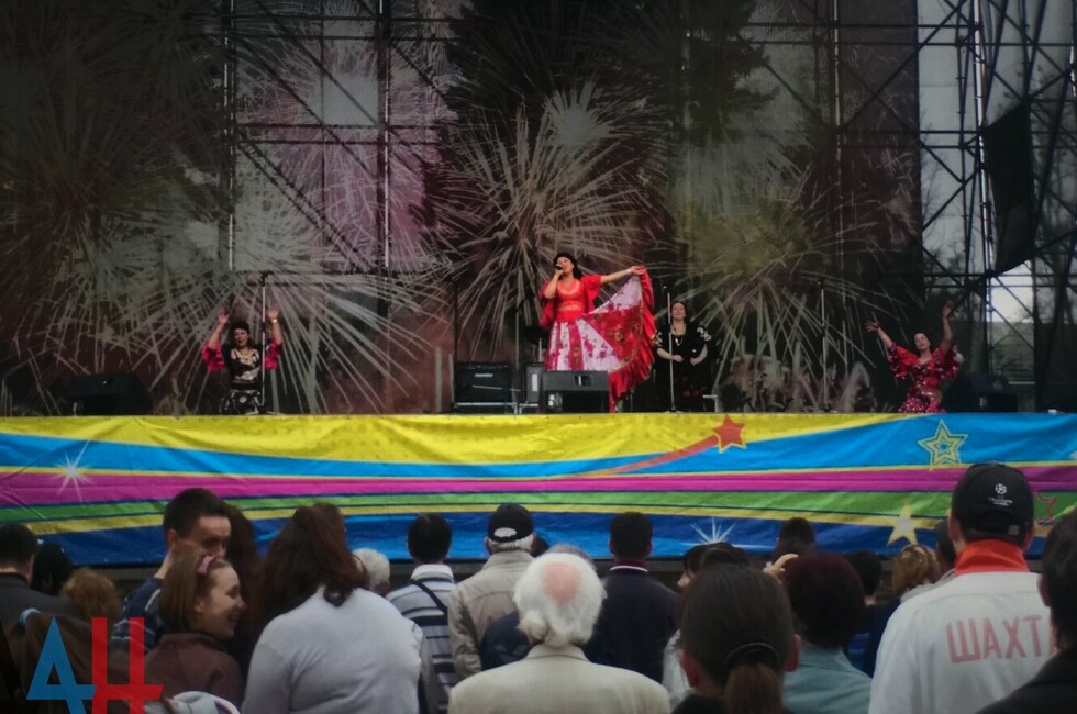 Массовый митинг был устроен около памятника Ленину. Собравшиеся несли Красные флаги, скандировали лозунги против войны. В беседе с корр. ДАН многие участники признавались, что выступают резко против воссоединения с Украиной, и что целью ДНР должно стать обретение независимости. От центральной площади города демонстранты двинулись к парку им. Щербакова, где была организована концертная программа местных исполнителей.