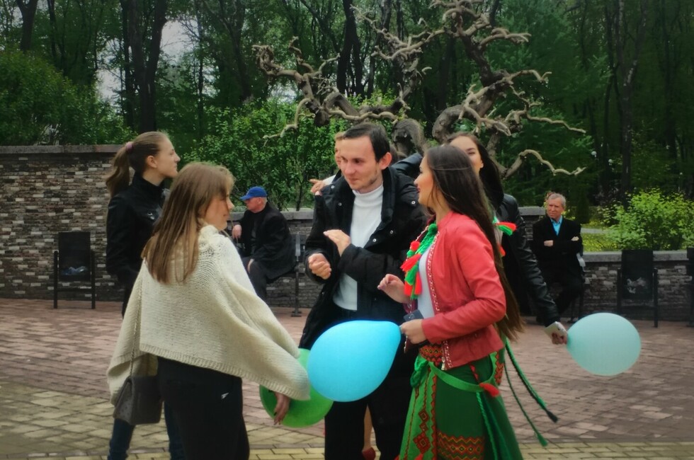 Донецк, 1 мая – ДАН. Несколько тысяч человек собрались сегодня в центре Донецка на празднование Первого Мая.