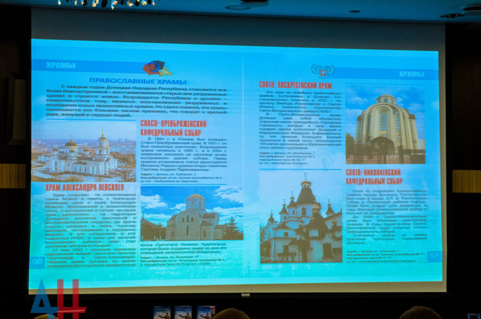 «Сегодня мы презентуем первый путеводитель по ДНР. Мы долго его правили, анализировали, и мы надеемся, что это будет определенный шаг к тому, чтобы привлечь к нам туристов», - отметил заместитель министра молодежи, спорта и туризма Николай Тарапата.