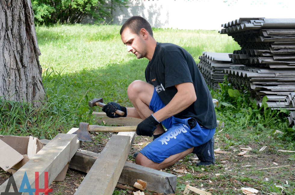На объекте уже установлены новые стеклопакеты, сейчас идет замена кровли. В ремонте задействовано около 10 человек. Сегодня с инспекцией учреждение посетил министр строительства и жилищно-коммунального хозяйства ДНР Сергей Наумец. Он сообщил, что кровельные работы будут завершены в июне, далее рабочие займутся прокладкой инженерных сетей.
