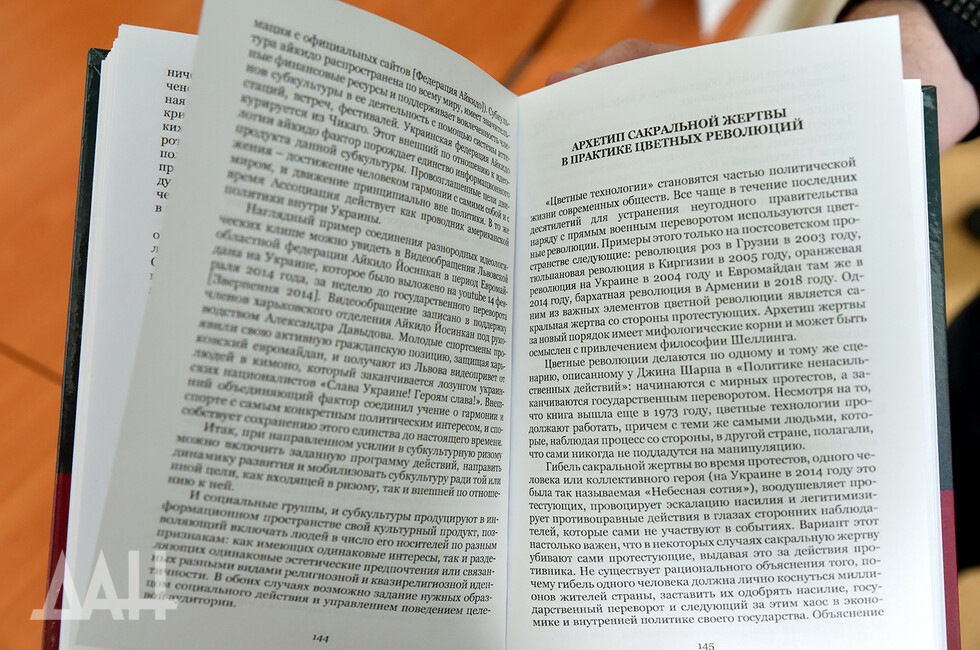Она сообщила, что при написании сосредоточилась на обобщении наработанного за годы войны материала, особенно опираясь на события последних лет в Донбассе и на Украине, в стремлении ввести понимание происходящего в научный оборот. «Мне интересно это как ученому и в общем для науки, считаю, это необходимо», - подчеркнула автор.